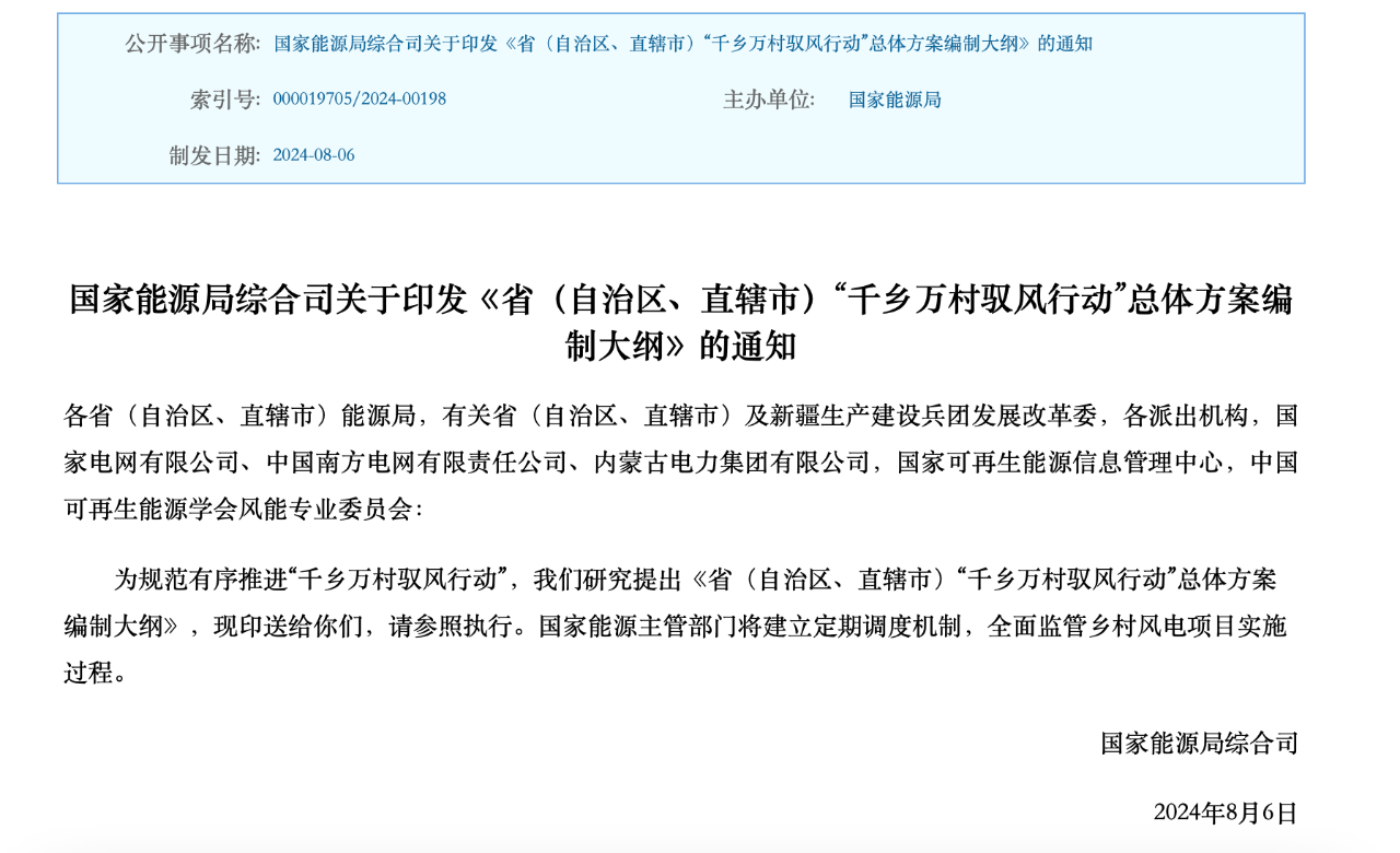 ¹ú¼ÒÄÜÔ´¾ÖÐû²¼“¹ú¼ÒÄÜÔ´¾Ö×ÛºÏ˾¹ØÓÚÓ¡·¢¡¶Ê¡£¨×ÔÖÎÇø¡¢Ö±Ï½ÊУ©“ǧÏçÍò´åÔ¦Á÷Ðж¯”×ÜÌ弯»®ÌåÀý¸ÙÒª¡·µÄ֪ͨ”£¬¡¶Í¨Öª¡·Ö¸³ö£¬¹ú¼ÒÄÜÔ´Ö÷¹Ü²¿·Ö½«½¨Á¢°´ÆÚµ÷Àí»úÖÆ£¬È«Ãæ¼à¹ÜÏç´å·çµçÏîĿʵʩÀú³Ì¡£Ê¡£¨×ÔÖÎÇø¡¢Ö±Ï½ÊУ©“ǧÏçÍò´åÔ¦Á÷Ðж¯”×ÜÌ弯»®ÌåÀý¸ÙÒªÒ»¡¢×ÜÌåÒªÇóÆ¾¾Ý¡¶¹ú¼ÒÉú³¤¸ïÐÂί ¹ú¼ÒÄÜÔ´¾Ö ũҵ